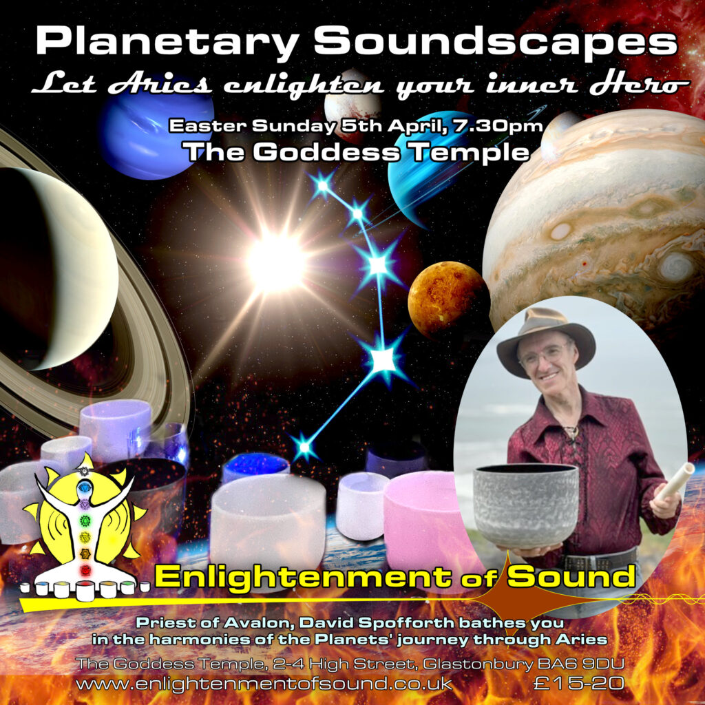 If you’re spending a, Easter Weekend in Glastonbury, I’m returning to my monthly Astrological Soundbath in the Goddess Temple this coming Sunday at 7.30pm.